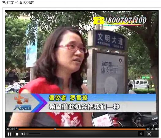 志愿者胥偉莉:我們這邊在做一個公益活動,倡導(dǎo)文明出行,愛護(hù)環(huán)境這么一個活動,希望從我做起,從點(diǎn)滴做起,共建我們美好的贛州。