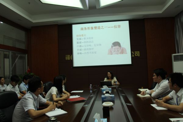 為強(qiáng)化員工商務(wù)禮儀知識教育培訓(xùn),提升員工的禮儀素養(yǎng),提高商務(wù)洽談和業(yè)務(wù)拓展能力,進(jìn)而提升公司整體形象和市場口碑,823下午,融資租賃公司特邀贛南師范大學(xué)文學(xué)院禮儀專家黃敏教授,為公司全體員工上一堂商務(wù)禮儀課。公司在家的干部職工參加了培訓(xùn)。