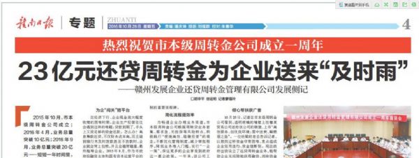 《贛南日?qǐng)?bào)》:23億元還貸周轉(zhuǎn)金為企業(yè)送去“及時(shí)雨”