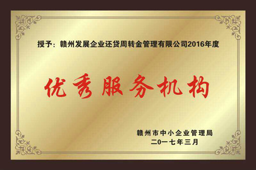 8月22日,贛州市中小企業(yè)管理局、贛州市中小微企業(yè)服務(wù)中心舉辦贛州市中小微企業(yè)服務(wù)中心理事會第二屆一次大會暨“2016年度優(yōu)秀服務(wù)機構(gòu)”表彰會。集團旗下贛州發(fā)展企業(yè)還貸周轉(zhuǎn)金管理有限公司榮獲“2016年度優(yōu)秀服務(wù)機構(gòu)”榮譽稱號。