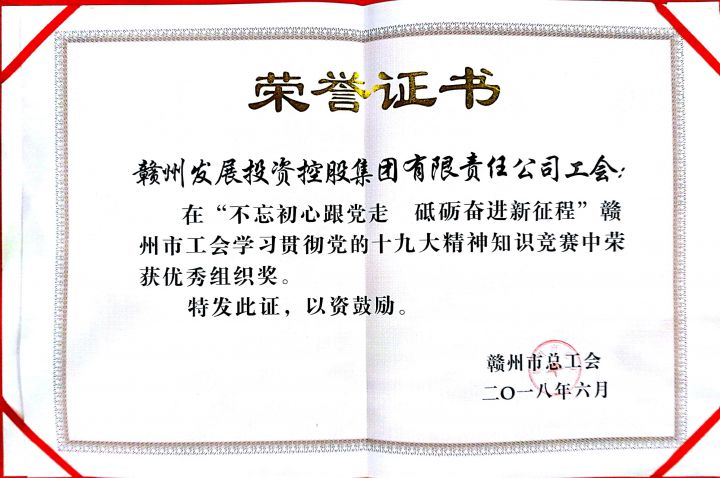 日前,集團工會積極組織廣大干部職工參與市總工會在全市工會舉辦“不忘初心跟黨走 砥礪奮進新征程”學(xué)習(xí)貫徹黨的十九大精神知識競賽。集團工會選拔出的三名選手經(jīng)過激烈的角逐獲得三等獎。集團工會還榮獲本次競賽“優(yōu)秀組織獎”。