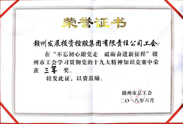 集團(tuán)工會(huì)榮獲市總工會(huì)學(xué)習(xí)貫徹黨的十九大精神“三等獎(jiǎng)”
