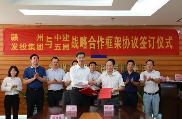 9月29日,集團與中國建筑第五工程局有限公司(中建五局)舉行戰(zhàn)略合作框架協(xié)議簽約會,雙方就在贛州市基礎(chǔ)設(shè)施建設(shè)、地產(chǎn)開發(fā)、設(shè)備融資租賃、主材供應(yīng)等深化合作方面進行了洽談,并簽訂了《贛州市投資開發(fā)、基礎(chǔ)設(shè)施建設(shè)項目戰(zhàn)略合作框架協(xié)議》,合作規(guī)模約100億元。集團黨委副書記、董事長李賤貴,中建五局黨委書記、董事長田衛(wèi)國代表雙方簽約。