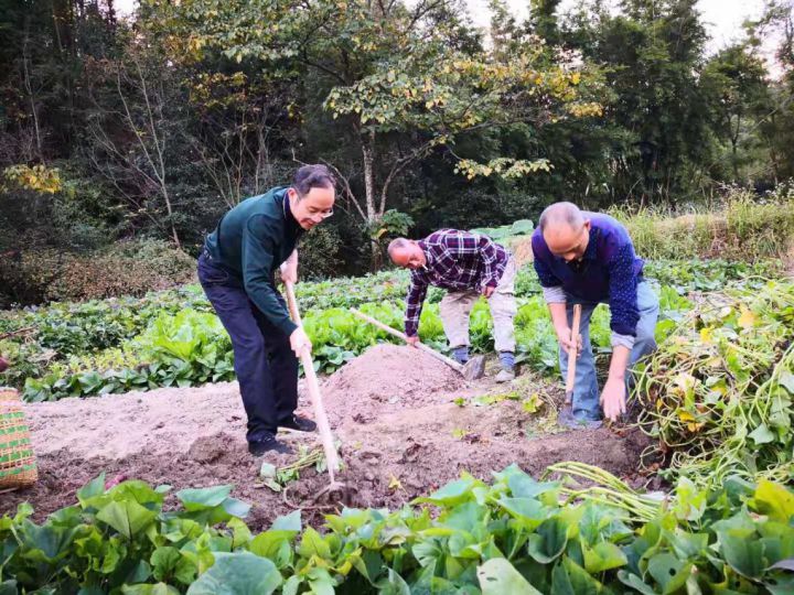 身子俯下去,才能聞到泥土香。李賤貴來到田坎地頭與林萬湖兩兄弟一同挖紅薯,問這對雙胞胎兄弟莊稼收成情況,他說,自己也是農(nóng)家子弟,以前也經(jīng)常干農(nóng)活,說著就輪起鋤頭,說干就干。