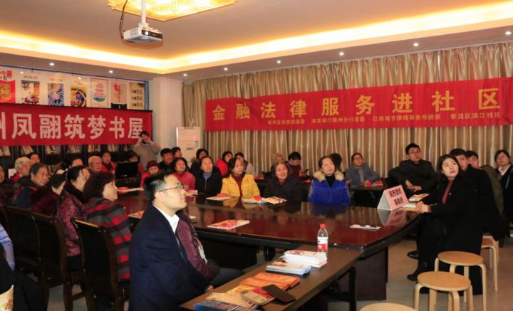 贛州發(fā)展集團(tuán)團(tuán)委、浦發(fā)銀行贛州分行團(tuán)委、江西南芳律師事務(wù)所團(tuán)委分別組織團(tuán)員青年(律師)代表作為志愿者與濱江社區(qū)居民展開講座交流,社區(qū)居民聽(tīng)得十分認(rèn)真。