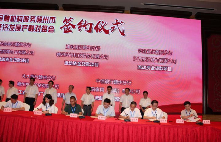 7月12日下午,江西省金融機(jī)構(gòu)服務(wù)贛州市經(jīng)濟(jì)發(fā)展產(chǎn)融對(duì)接會(huì)在贛州召開。