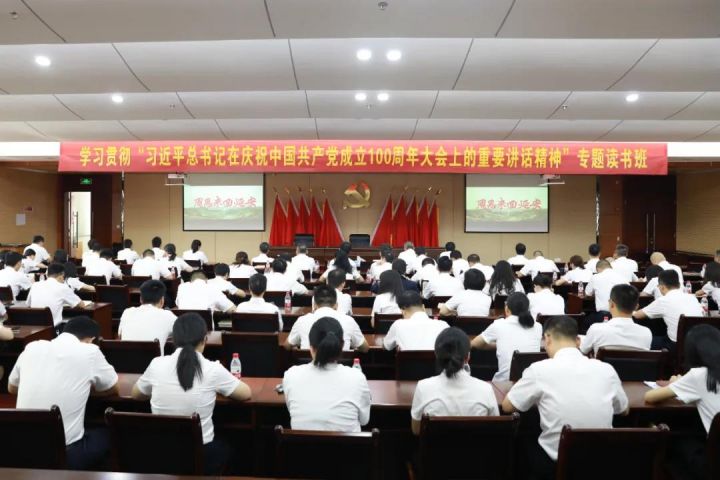 為深入學(xué)習(xí)貫徹習(xí)近平總書記在慶祝中國共產(chǎn)黨成立100周年大會上的重要講話精神,推動黨史學(xué)習(xí)教育走深走實(shí),贛州發(fā)展集團(tuán)黨委于7月15日至16日舉辦“學(xué)習(xí)貫徹習(xí)近平總書記在慶祝中國共產(chǎn)黨成立100周年大會上的重要講話精神”專題讀書班。此次專題讀書班為期2天,采用集中學(xué)習(xí)、交流研討、專題輔導(dǎo)等形式進(jìn)行,學(xué)習(xí)內(nèi)容豐富、學(xué)習(xí)形式多樣。集團(tuán)黨委書記、董事長李賤貴,集團(tuán)黨委副書記、總經(jīng)理楊曉斌以及黨委班子成員、非黨員班子成員,全體中層干部,全體黨員參加。