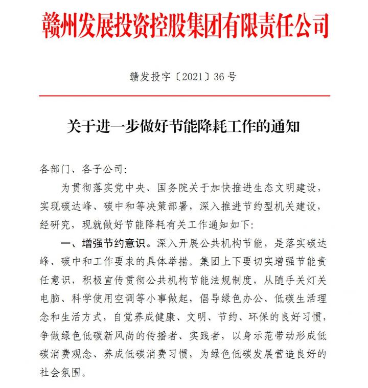 本次全國節(jié)能宣傳周活動(dòng)主題是“節(jié)能低碳,綠色發(fā)展” 。為積極響應(yīng)全國節(jié)能減排宣傳周活動(dòng)號(hào)召,增強(qiáng)職工節(jié)能減排意識(shí),樹立綠色辦公、低碳生活理念,助力實(shí)現(xiàn)碳達(dá)峰、碳中和目標(biāo),贛州發(fā)展集團(tuán)在行動(dòng)!
