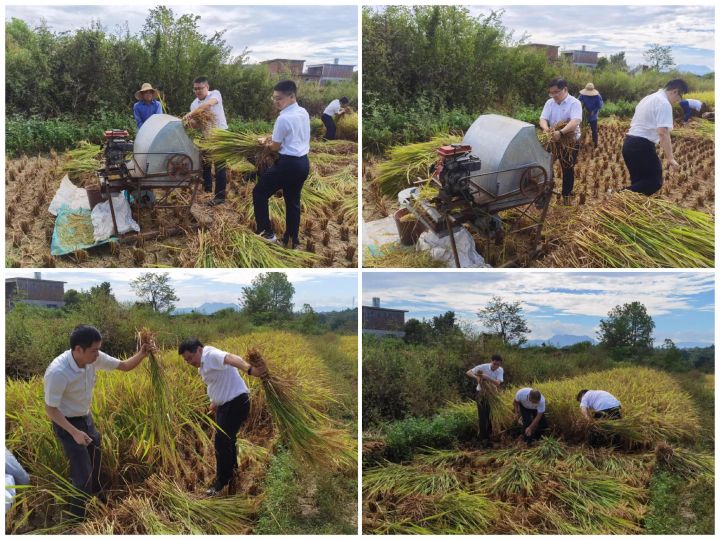 “稻田美如畫,秋季收割忙”。眼下正是稻谷收割農(nóng)忙季節(jié),當?shù)弥謇镉修r(nóng)戶需要幫忙收割稻子后,租賃公司支部黨員下了車,在集團駐村工作隊隊長的的帶領下,頂著烈日直奔農(nóng)戶家的稻田,一起幫助農(nóng)戶收割稻子。在稻田里,黨員們手拿鐮刀、挽著褲腳在稻田里揮汗如雨,有的割稻谷、有的打稻谷、有的裝袋,沒多久,稻田里就堆起了不少收割下來的稻子,一摞摞的從田埂邊延伸至稻田里,看著成袋的稻谷裝車,所有參與勞動的黨員干部也忘記了耕作的辛勞。