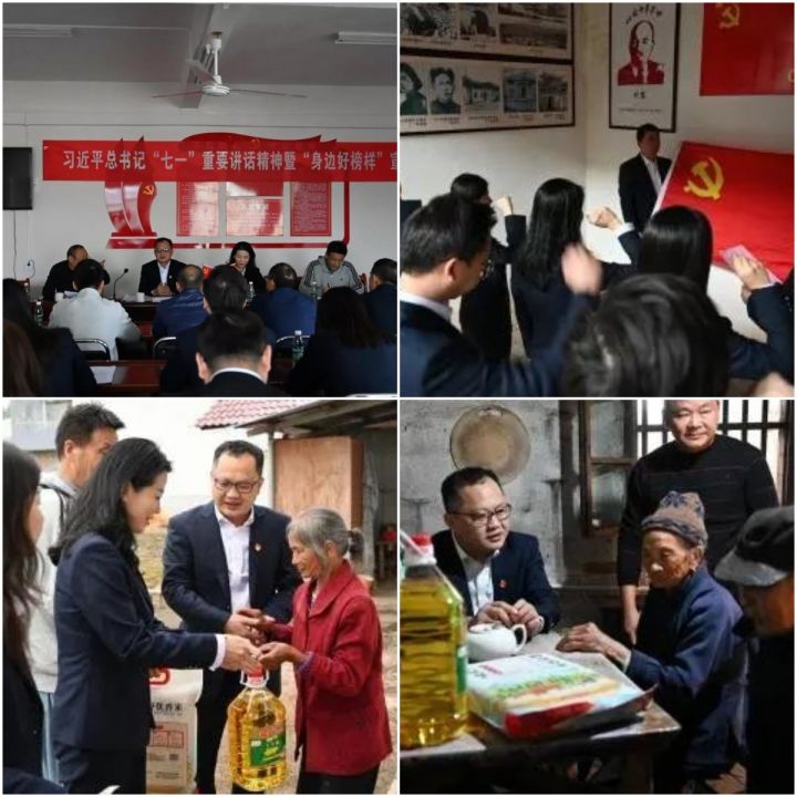 宣講結(jié)束后,城鎮(zhèn)公司黨支部全體黨員前往幫扶村開(kāi)展愛(ài)心慰問(wèn)活動(dòng),上門為村里的老人送去了生活用品,并幫助村委開(kāi)展衛(wèi)生整治清理活動(dòng),對(duì)村里公共區(qū)域的垃圾進(jìn)行了集中清理。同時(shí),支部黨員還參觀了會(huì)尋安中心縣委舊址。
