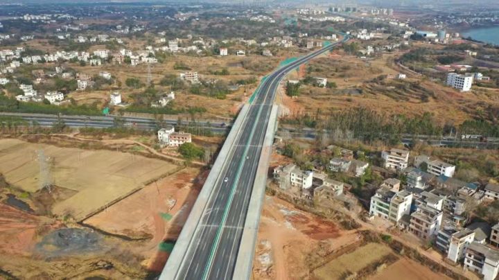 ▲圖為2020年12月23日,G105國(guó)道贛州中心城區(qū)改線一期工程實(shí)現(xiàn)雙向主車道全線通車。