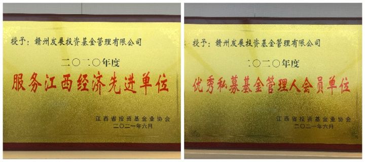 喜訊!贛州發(fā)展集團旗下基金公司榮獲2020年度“服務(wù)江西經(jīng)濟先進單位”和“優(yōu)秀私募基金管理人會員單位”榮譽稱號