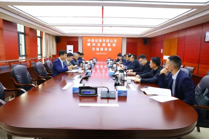 3月27日,中信證券華南股份有限公司董事長(zhǎng)胡伏云一行到集團(tuán)洽談合作。贛州發(fā)展集團(tuán)黨委書(shū)記、董事長(zhǎng)楊曉斌,黨委副書(shū)記、總經(jīng)理梁敏輝,集團(tuán)領(lǐng)導(dǎo)廖生興、孟佳聰出席座談會(huì),相關(guān)部門(mén)、子公司負(fù)責(zé)同志參加座談。