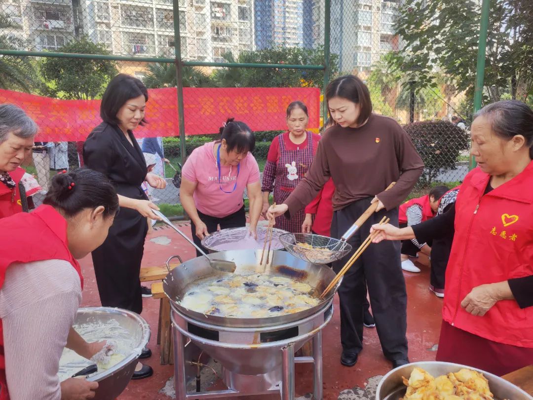 活動(dòng)現(xiàn)場(chǎng),志愿者們攜手為小區(qū)老人共同制作贛南客家傳統(tǒng)美食米果和擂茶,組織眼科醫(yī)院為老人們健康義診,與老人們?cè)捈页?、問冷暖,聽老人們講述家里孝親敬老的故事,了解他們有什么需要解決的問題,向老人們致以節(jié)日的問候和祝福,祝他們生活愉快,身體健康。志愿者的到來,讓平日里安靜祥和的小區(qū)一下子熱鬧起來,讓老人們感受到社會(huì)的關(guān)愛。