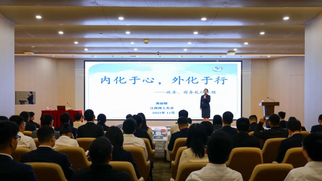 本次活動邀請了江西理工大學(xué)文法學(xué)院公共文藝教研室主任黃麗娜進行專題授課,以《內(nèi)化于心 外化于行》為題,從禮儀接待中的四心、四聲為切入點,通過現(xiàn)場講解、示范互動等形式,引導(dǎo)員工們思考討論,并通過“理論+現(xiàn)場演示”相結(jié)合的方式,結(jié)合日常工作中的實際場景,深入淺出地講解了企業(yè)員工在規(guī)范著裝、商務(wù)接待、儀表儀容、語言溝通等方面的注意要點。
