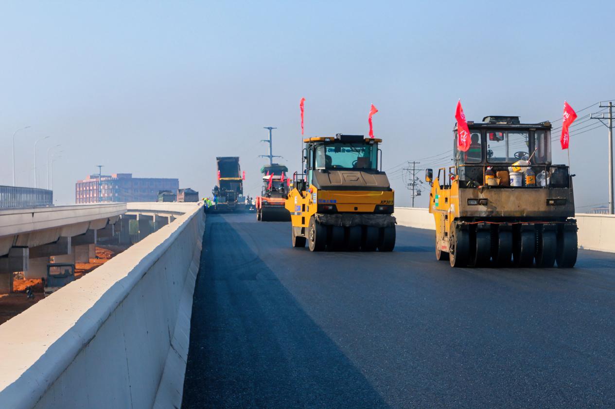 贛南大道快速路Ⅳ標(龍嶺西路至創(chuàng)勝路東側(cè)段)項目瀝青攤鋪全長約5.68km,總鋪設(shè)面積約13.3萬平方米。截止目前,已累計完成總工程量的77%,主線橋梁工程完成100%。下一步,項目將重點推進伸縮縫、聲屏障、橋面照明、交通設(shè)施等橋面系及橋面附屬施工,為實現(xiàn)2023年底項目主線高架橋通車目標全力沖刺。