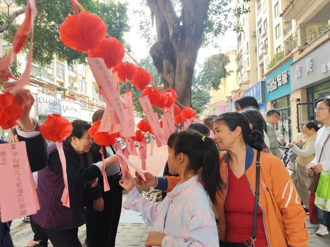 活動現(xiàn)場,張燈結(jié)彩,熱鬧非凡。社區(qū)工作人員和聯(lián)動單位志愿者懸掛好燈籠,搭建起燈謎區(qū),懸掛著各式各樣的燈謎,包括經(jīng)典的成語、民間諺語等。居民們認(rèn)真思考著每一個燈謎的答案?;顒游嗽絹碓蕉嗟纳鐓^(qū)居民,有的盯著謎題凝神思考。每猜中一燈謎,不僅可以吃湯圓還能獲得抽獎的資格。有的為自己猜中謎底露出喜悅的表情,興奮地到兌獎處領(lǐng)獎品,陣陣笑聲、歡呼聲不時傳出……