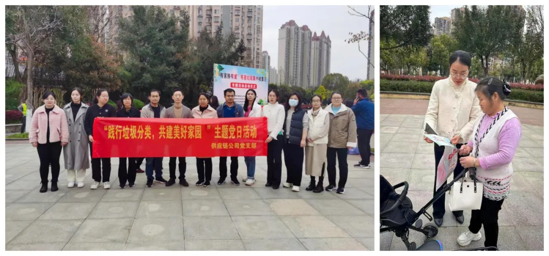 供應(yīng)鏈公司支部黨員志愿者深入信豐路社區(qū)開展“踐行垃圾分類 共建美好家園”主題黨日活動。活動中,黨員志愿者們向來往的居民發(fā)放生活垃圾宣傳冊,細(xì)心講解生活垃圾的概念、分類標(biāo)準(zhǔn)以及垃圾分類實效,并耐心解答居民提出的日常垃圾分類難題,進(jìn)一步普及了垃圾分類知識,傳播了垃圾分類理念,引導(dǎo)居民養(yǎng)成垃圾分類的良好習(xí)慣。