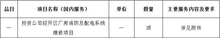 項(xiàng)目名稱(chēng):投資公司經(jīng)開(kāi)區(qū)廠房消防及配電系統(tǒng)維修項(xiàng)目