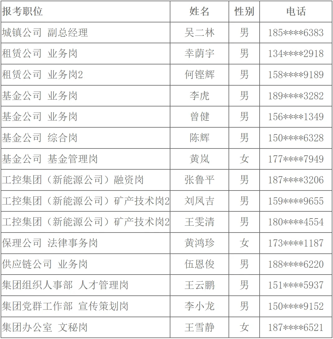 一、入圍體檢與背景調(diào)查人員公示名單