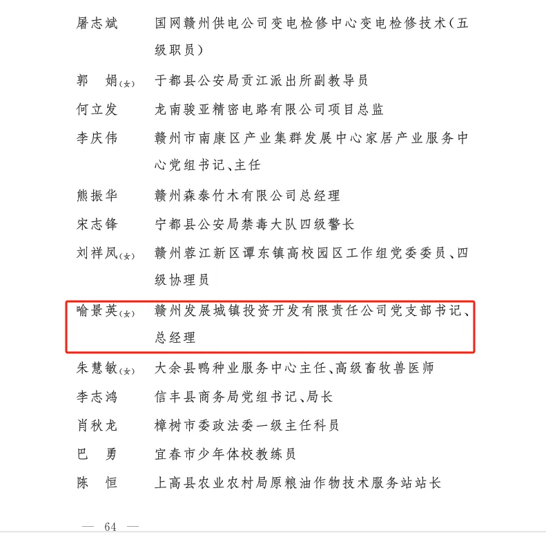 喜訊!贛州發(fā)展集團(tuán)喻景英入選2024年度“新時(shí)代贛鄱先鋒”