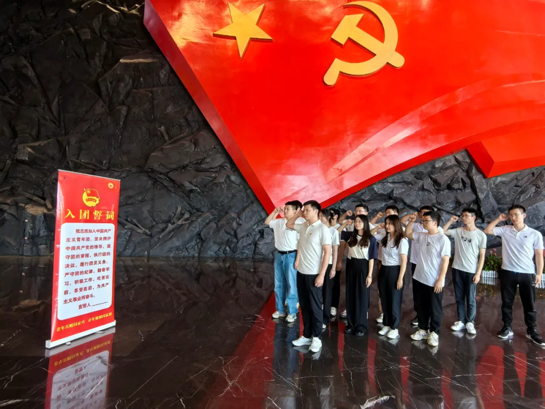 在大廳廣場,青年團(tuán)員重溫入團(tuán)誓詞,用誓詞表達(dá)對黨的崇高信仰和無限忠誠,以及為黨的事業(yè)不懈奮斗的決心。