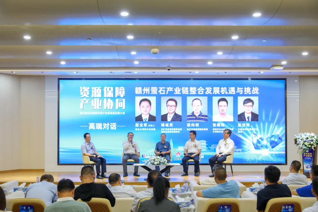 在“高端對(duì)話(huà)”環(huán)節(jié),五礦證券資深董事總經(jīng)理兼證券研究所所長(zhǎng)楊誠(chéng)笑、天賜材料首席科學(xué)家兼董事趙經(jīng)緯、金石資源集團(tuán)副總經(jīng)理胡向明、湖南有色金屬投資有限公司副總經(jīng)理張曉林等嘉賓以“贛州螢石產(chǎn)業(yè)鏈整合發(fā)展機(jī)遇與挑戰(zhàn)”為主題展開(kāi)了深入交流與思想碰撞。