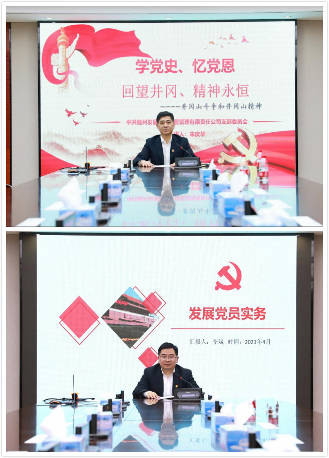 資產(chǎn)公司黨支部書(shū)記朱慶華、融資租賃公司副總經(jīng)理李斌分別以“學(xué)黨史、憶黨恩,回望井岡、精神永恒”和“發(fā)展黨員實(shí)務(wù)”為題為大家作專題講課。
